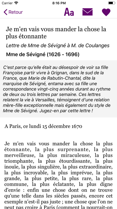 - Redécouvrez les classiques de la littérature sous une forme ludique et originale en recevant chaque jour un extrait choisi et contextualisé. - Testez votre culture littéraire à travers des jeux et énigmes. - Archivez, partagez vos textes préférés et faites de votre iPhone le nouveau salon littéraire du XXIe siècle. - Rejoignez la communauté de Un Texte Un Jour et participez aux sondages sur les goûts littéraires.