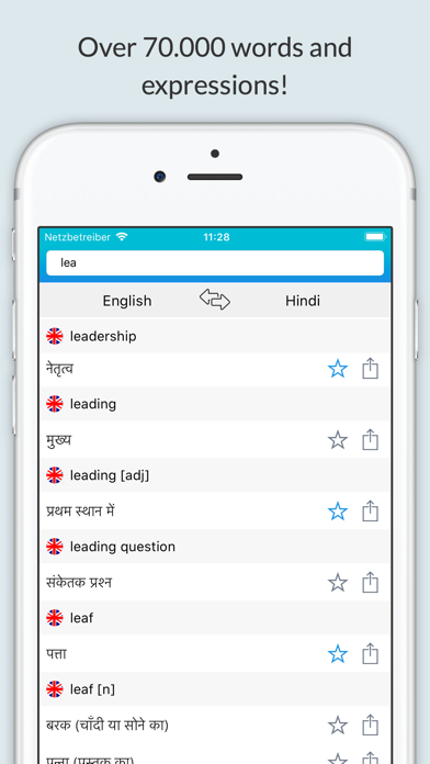 Offline English Hindi Dictionary. Over 37.000 words and expressions! * More than 37.000 entries * Works offline! No Internet connection needed, the perfect translator for your trips, your studies, or when no data connection is available. * Bookmark your favorite translations for fast reference * Copy the translations to the system clipboard for use in other apps * Instant search