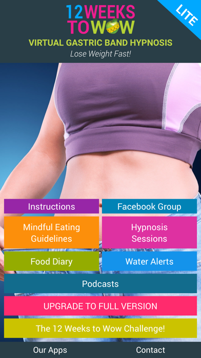 AS SEEN on CNN, BBC, Daily Mail, Chat Magazine and Channel 4's 'How to Lose Weight Well', The WEIGHT LOSS PHENOMENON is now in a Best Selling APP! * No1 Grossing Health & Fitness App for iPad in the UK * No1 Grossing Health & Fitness App for iPad in Ireland * No1 Grossing Health & Fitness App for iPhone in Cyprus * No1 Grossing Health & Fitness App for iPhone in the Bahamas * No1 Grossing Health & Fitness App for iPad in the UAE * No1 Grossing Health & Fitness App for iPad in Venezuela * No1 Grossing Health & Fitness App for iPad in Bulgaria * No1 Grossing Health & Fitness App for iPad in Kuwait * No1 Grossing Health & Fitness App for iPad in Qatar * No1 Grossing Health & Fitness App for iPad in Egypt * No1 Grossing Health & Fitness App for iPhone in Lebanon • “32.5 lbs in 61 days! I feel like I'm melting!:)” - Tracy • “OMG - can't quite believe I'm posting this! First, my size 20s literally fell down when I walked up the stairs – and now my size 16s only b****y fit me! Oh happy day, and WHAT a birthday present!” -Helen To read more amazing weight loss SUCCESS STORIES, search ‘12 Weeks to Wow’ on Facebook NOW (and read the Forum on mumsnet) You could spend hundreds (if not thousands) on Virtual Gastric band Hypnosis therapy – or grab this app for ‘peanuts’ to lose weight without dieting in the comfort of your own home! It’s your call... **** Join our Facebook Support Group NOW for ongoing support in your weight loss journey**** App Features: * Relaxing Hypnotherapy Weight Loss Session * Food Photo Diary and Water Diary (track your daily meals & water intake) * FREE Facebook Support Group - join HUNDREDS of other successful users online • Discover how easy it is to change your eating habits successfully and permanently. Become the slim, fit healthy person you long to be, without the expense, risks or discomfort of surgery. • The 12 Weeks to Wow - Virtual Gastric Band Surgery Programme is a step-by-step hypnotherapy program that guides you to successful weight loss like never before. No starvation diet, no calorie counting, just a natural way of eating that helps you lose all your unwanted fat safely and steadily. DISCLAIMER: This application is intended to inform you and enhance your general knowledge in respect of weight loss, and should never be used as a substitute for medical care or advice. You must always seek medical advice for medical conditions and health issues. If you decide to apply any of the information in this application you are taking full responsibility for your actions. We are not responsible for any direct or indirect, punitive, special, incidental or any consequential damages that arise as a direct or indirect result of applying any part of this material which is provided in this application for educational purposes only and is without warranties.