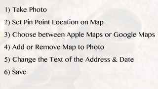 MapStamp Photo App! *Easy to use and set up. *Add Date, Time, Seconds and Map with Address. *Select from camera roll. *Save and Share with Ease!