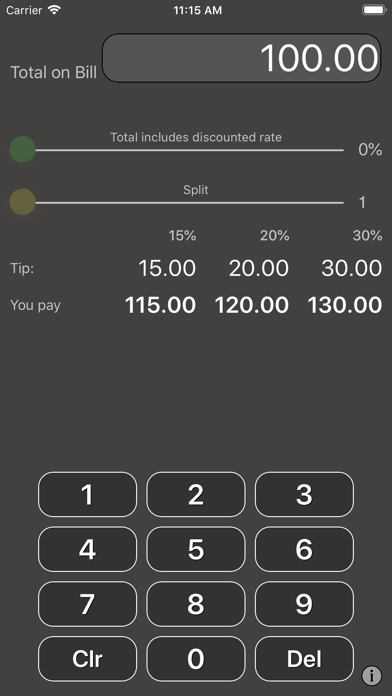 An easy restaurant bill splitter, discount and tip calculator. Yes, there are many tip calculators available, but Bill Tipper easily includes splitting, discounts and optionally accounts for sales tax to back out of the tip calculation. You can also customize the background color.