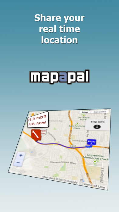 Let your friends follow your real-time position, easy and free. Or just record your activity and play it back later. ►Get started instantly: Click 'Quick start' and start a trip. Share the link with your friends and they can follow your movement in real time. ►For more features, create a user and login. ►You don’t need to sign in or register. Just enter Quick start mode, start a trip and share the link. That’s it!◄ Mapapal is the perfect App when you’re about to meet or pick someone up. Just send them the link and they can meet you up in perfect time. On the map you can see trip length, average speed, current speed and much more. If you create a username you have access to more features like personal profile picture, access to previous trips and you can add pals etc. Mapapal is also great to follow your children to school, your way to work, your holiday trips etc. Anonymous mode guarantees you that no one, except those people you share the link with, can see the trip. In Anonymous mode it is also possible to enable trip history to replay your trips later. Mapapal is designed to be as simple as possible, without all complex settings and requirements to sign in with social networks etc. that are seen in most GPS trackers. Mapapal uses your GPS and to get an accurate position this app is preferably used outdoors. For more information please visit www.mapapal.com Important: Continued use of GPS can dramatically decrease battery life.