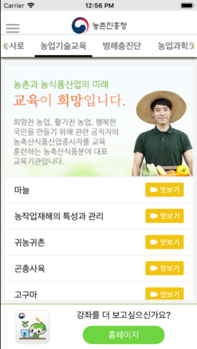 농촌진흥청의 최신 농업소식 관련 주요뉴스 서비스 앱 농촌진흥청에서는 새로운 농업소식과 관련된, 주요뉴스를 최신농업기술 알리미 앱을 통해 제공합니다. 또한 새로운 소식이 업데이트 될 때마다, Push 알림 서비스를 통해 최신 농업소식을, 전달 받을 수 있습니다. 이제, 매일 매일 농촌진흥청에서 알려드리는 최신 농업소식을 스마트폰으로 편리하게 받아보시기 바랍니다.