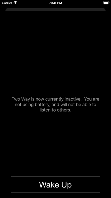 Two Way is a walkie talkie application that allows any number of users to talk to each other instantly. There is no signup required and no personal information is ever collected. Two Way's simple user interface is easy to use. Start talking to your friends, co-workers, or family members now.