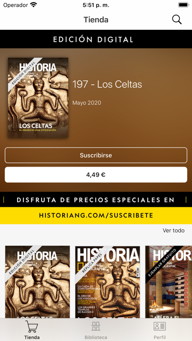Imprescindible para conocer de forma amena y rigurosa los últimos hallazgos y descubrimientos históricos. Disfrutar de la Historia: Sumergirnos cada mes en el Egipto faráonico, trasladarnos a Grecia y Roma, viajar a la Edad Media y adentrarnos en los orígenes del mundo contemporáneo. Historia National Geographic combina en cada número las mejores fotografías, los textos más amenos y gran número de mapas y reconstrucciones de ciudades y monumentos. Una suma de lo mejor del periodismo de divulgación, el rigor del especialista y un espléndido formato de libro ilustrado. Indicaciones respecto a suscripciones In-App de iTunes: - El cobro será cargado a la cuenta de iTunes registrada cuando se confirme la compra - La suscripción se renovará automáticamente a menos que la renovación automática sea deshabilitada 24 horas antes de la finalización de la suscripción contratada - El cobro de la suscripción renovada será cargada 24 horas antes de la finalización del periodo de la suscripción contratada - El usuario puede gestionar las suscripciones y las suscripciones auto-renovables pueden ser deshabilitadas desde la cuenta de usuario en cualquier momento Puedes consultar las condiciones de uso y política de privacidad en los siguientes enlaces: http://www.rba.es/general/condiciones-_86