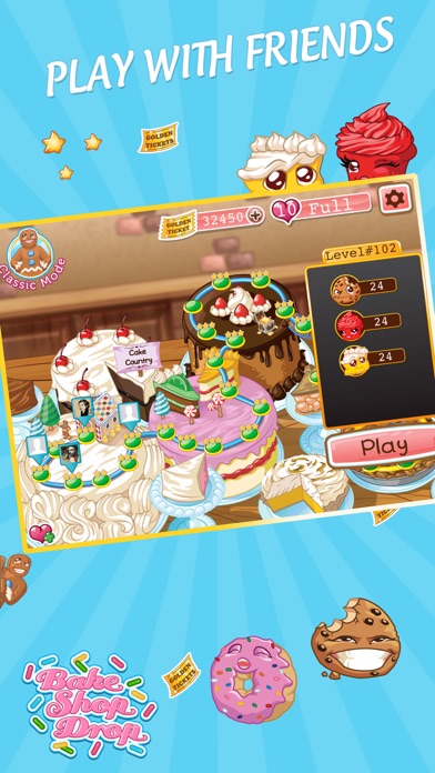 재미있고 플레이하기 쉽지만 마스터하기는 어려운 맛있는 페이스트리 매칭 게임! 흥미롭고 중독성이 강한 이 페이스트리 퍼즐 게임은 너무 재미있어서 도대체 내려놓을 수가 없습니다! 수십만 명의 플레이어들이 페이스북에서 베이크 숍 드롭을 즐겼으며 이제 iPhone, iPad 및 iPod touch로 무대를 넓힙니다! 어디에서든 페이스트리 게임을 대한 욕구를 충족시키실 수 있습니다! --------------------------------------------- 베이크 숍 드롭의 특징: - 시나몬 롤과 베어 클로 같은 특별 페이스트리 잠금해제! - 플레이하기 쉽고 재미있지만 갖가지 페이스트리 맵 세계들을 섭렵하는 것은 만만치 않은 일입니다! - 멋진 망막 그래픽과 웃음짓게 하는 재미있는 음악을 즐기세요! - 새 지도, 새 증가를 잠금 해제하고 골든 티켓을 모으세요! - 완료할 도전과 목표가 100개 이상입니다! - 당신과 친구들을 위한 리더보드 --------------------------------------------- 이 게임에 대한 최신 소식이나 정보를 보시려면 페이스북이나 저희 웹사이트를 방문하십시오! facebook.com/BakeShopDrop www.bakeshopdrop.com