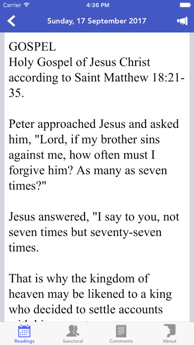 The simplest Daily Readings app for Catholics that allows you to follow the Daily Mass either at Church or on your own so that you can understand it better with occasional comments from key religious personalities from around the globe. BONUS: Select the entire text from the daily readings and have your device read it out loud for you so you can listen to today's readings while you are getting ready in the morning or commuting to work and enjoy a better day after hearing God's message for the day.