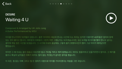 파파송은 음악을 하는 아빠가 아이에게 들려주는 이야기를 담은 태교음악 어플입니다. 클래식 음악이 대부분 태교음악으로 쓰이고 있지만, 무료로 제공되는, 아빠의 애틋함이 담긴 이 음악들도 여러분과 여러분의 아이를 이어주는 좋은 “다리”가 될 것입니다. 주요기능 -------- • 자동 음악 재생 어플을 실행해서 곡을 선택하면 자동으로 음악이 재생되며, 잠금 상태에서도 음악은 계속 재생됩니다. • 잠금 상태 컨트롤 화면 잠금 상태에서도 음악을 재생 / 일시 정지 시킬 수 있습니다. • 각 곡 정보 제공 각 곡 마다 제공되는 이미지를 터치하면 음악의 제작배경 / 가사 등 정보를 제공합니다. • 미니멀 디자인 음악을 감상하는 데 불필요한 요소는 모두 제거하였습니다. • 음악과 매칭되는 곡 이미지 제공 음악의 느낌 등과 매칭되는 곡 이미지를 채용함으로 곡을 보고 듣는 경험을 제공합니다.
