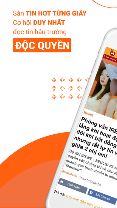 Đây là ứng dụng đọc tin chính thức của Kênh 14 - trang tin điện tử dành cho giới trẻ lớn nhất Việt Nam. Đem tới những tin tức siêu tốc, độc quyền, hỗ trợ đọc tin dễ dàng, nâng cao trải nghiệm nhờ ứng dụng công nghệ tiên tiến. Với sự đầu tư bài bản, chỉn chu trong từng chuyên mục, App đọc tin kenh14 hứa hẹn trở thành công cụ cập nhật tin tức không thể thiếu của giới trẻ thời đại số: Star: Biết hết chuyện Showbiz với các TIN HOT về đời sống, scandals... Gặp gỡ thần tượng trong nước và thế giới qua những tin tức ĐỘC QUYỀN chỉ có ở kênh 14 TV show: Đi sâu hậu trường, thông tin bên lề của những chương trình truyền hình HOT NHẤT HIỆN TẠI Cine: Không bỏ sót bất kỳ bộ phim nào, đem tin tức thế giới điện ảnh thu nhỏ trong điện thoại của bạn Musik: CẬP NHẬT các bài hát mới nhất, ""mổ xẻ"" MV, bật mí câu chuyện của những người trong nghề Beauty & Fashion: ĐÓN ĐẦU mọi xu hướng, giúp độc giả định hình phong cách cá nhân Video: Mang lại cho người dùng trải nghiệm thưởng thức các video có nội dung cực hấp dẫn với tốc độ nhanh nhất, chất lượng đẹp nhất Emagazine: DUY NHẤT và CHỈ CÓ ở kenh14, nơi giới trẻ sử dụng ngôn ngữ hiện đại và hình ảnh độc đáo để nói lên những góc khuất, phá vỡ định kiến.