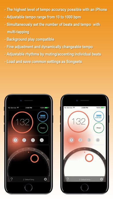 〓 Intuitive, enjoyable operation 〓 Elegant, customisable interface 〓 Accurate, diverse rhythm selection ◎ Developed for musicians by a leading musical instrument manufacturer. ◎ Designed for iOS, with a clean, elegant interface. ===================================== ● Matching Touch Tuner app also available! ===================================== ■Key strengths 1: Operability - All operations available from a single screen - Effortless, single-finger operation - Intuitive interface with swipeable control dials - Realistic animation effects ■Key strengths 2: Customisability - Freely adjustable interface layout and colour - Amusing ‘auto-layout’ mode - Selectable wallpaper background with accent flash - Adjustable pendulum position and motion settings ■Key strengths 3: Functionality - The highest level of tempo accuracy possible with an iPhone - Adjustable tempo range from 10 to 1000 bpm - Simultaneously set the number of beats and tempo with multi-tapping - Background play compatible - Fine adjustment and dynamically changeable tempo - Adjustable rhythms by muting/accenting individual beats - Load and save common settings as Songsets