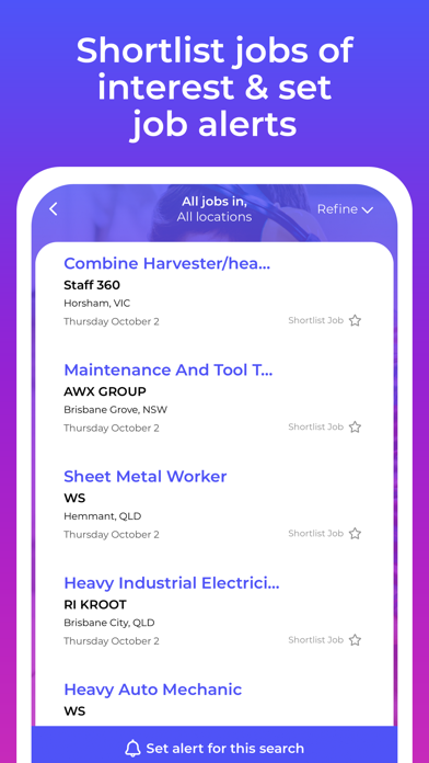 Looking to a start or expand your career in the Australian Trades and Services industry? The Trade Jobs & Services Jobs App has got you covered with 1,000's of jobs, apprenticeships and traineeships from Australian employers and recruiters within the Trades and Services industry. Available trade and services job roles include; carpenters, plumbers, electricians, mechanics, panel beaters, bricklayers, cabinet makers, boiler makers, glaziers, painters, roof tilers, landscapers, gardeners and many more. There is a wide variety of careers and occupations within the sector and the Trade Jobs & Services Jobs App has thousands of job opportunities available right now from across Australia. WE HAVE A TRADES AND SERVICES SECTOR JOB FOR YOU The Trade Jobs & Services Jobs App provides you access to thousands of jobs, work experience, apprenticeships, traineeships and career vacancies from company websites and job boards across Australia. CONNECT WITH TALENT COMMUNITIES THAT NEED YOUR SKILLS AND EXPERIENCE The Trade Jobs & Services Jobs App connects you to local, regional, project and industry based Talent Communities so you can access exclusive employment opportunities from employers. Talent Communities also connect you to work, education, events, support and information for employment options and career pathways of interest. TOOLS TO POWER YOUR TRADES AND SERVICES SECTOR JOB SEARCH • Search, join, share and apply – Thousands of trades and services sector vacancies Australia wide. • Simple location, keyword and industry job search. • Talent Community slider to view and join Talent Communities that interest you. • Full-time, part-time, contract, casual, apprentice, internship and executive jobs. • Create job alerts to be updated of new job roles. • Register to create a personal shortlist of jobs and apply. Download the Trade Jobs & Services Jobs App for access to all Australian Trades and Services industry jobs.