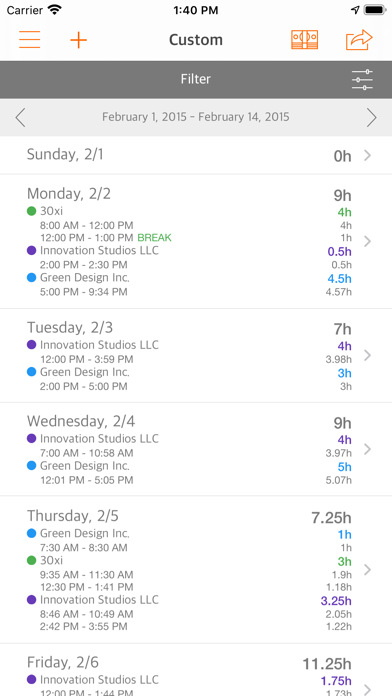 Are you a freelancer or contractor? Do you manually keep track of your timesheets? Are you tired of constantly forgetting on Friday how many hours you worked on Monday? Whether you work one job site or multiple on a given day, this app is for you. Easy Hours is the new way to track time just by having your device. Free yourself. Start using Easy Hours today. TIMESHEETS See how your time is spent from week to week even when the device is offline. Easy Hours summarizes your activities so that you can spend your time doing instead of remembering. Whether you work Saturday to Friday or Monday to Sunday, you decide how you manage your time. DASHBOARDS Do you work multiple projects on a given day? We provide Yearly, Monthly, Weekly, Daily and Custom summaries of your time across all jobs. With advanced filter capability, view your Dashboard your way. Now with the Job dashboard you have an efficient way to swipe through all your jobs for the current day, start / stop time, take a break, add memos and more. CHARTS Visualize your time with Charts. We support Pie Charts, Line Charts and Bar Charts. Want to share your Chart with someone else? We've got that too! TIME TRACKING Pause and restart time tracking with the tap of a button. Edit times with a tap or key in your duration. Add new times because you accidentally left your device at home. With shortcuts for Now, Morning, Afternoon, Evening, :00, :15, :30 and :45, changing time is easy and fast. You can even split your time entry and Easy Hours will copy over any tags and memos. MEMOS Need to keep track of what you did at a particular time on a given day? Easy Hours allows you to attach notes that you can use to remind yourself. TAGS Tag your times with keywords such as "paid", "holiday" or "lunch break". Multiple tags can be applied to a time entry and you can re-use tags. Tags can also be applied in bulk to a set of time entries filtered by date range, jobs and/or tags. FILTERING More powerful filtering that works hand in gloves with your tags. Filter using Jobs, Tags or any combination of both. Sharing uses Filters just like you would expect too. CLOUD BACKUP & SYNCHRONIZATION Start tracking your time on one device and continue on another all with iCloud. Worried about data loss? Easy Hours can automatically backup your data to iCloud and synchronize it with your other devices. COLORS Use colors to uniquely customize your jobs and your reports. ROUNDING Do you prefer round numbers when calculating your total hours? Personalize your timesheet to calculate your total hours exactly as you want it. CURRENCY Use a different currency to bill your clients? We provide support for most currency combinations with the exception of Federation and Galactic Credits. LANDSCAPE Unlike some of our competitors, yes we support landscape! Go on and rotate your device, we dare you! 3D TOUCH For those with compatible devices, 3D Touch has been incorporated to make usage more fun and exciting. Use 3D Touch to jump to your Weekly, Monthly, Custom Dashboards or Charts. CLOCK IN/OUT NOTIFICATIONS Configurable notifications when you clock in and clock out of a location. Let Easy Hours free you up from having to constantly track your time in spreadsheets or notes. Notifications will provide you with the confidence that your time is being tracked with precision. SHARE TIME With the convenience of sharing you can let anyone, including yourself, know exactly how long you have been working on a task. The export has that great look and feel you expect, too. You can even personalize it by choosing a color theme, your Name and Organization, export format (HTML or CSV) and whether to include individual time entries. PERSONALIZED DAILY REMINDERS Easy Hours lets you decide if you’ve spent too much time on a task. It is smart enough to know when you should call it a day. We provide personalized reminders instead of the usual plain old notifications.