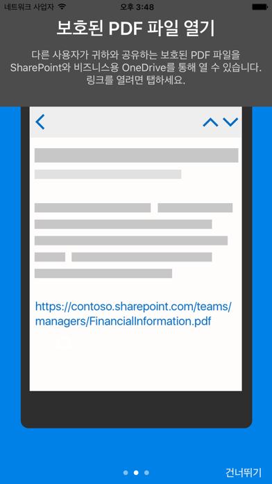 참고: Microsoft Azure Information Protection 뷰어 응용 프로그램을 사용하려면 개인용 Microsoft Azure Rights Management 또는 RMS 사용 Office 365 계정을 가지고 있어야 합니다. Azure Information Protection page에서 무료 계정을 등록할 수 있습니다. Microsoft 계정(Live, Hotmail 또는 Outlook.com)을 사용하여 로그인할 수 없습니다. Azure Information Protection 앱으로 안전하게 다른 사람들과 공동 작업을 할 수 있습니다. 다른 사람들이 공유한 보호된 파일(권한 보호 메일 메시지, PDF 파일, 사진, 텍스트 파일 및 .pfile로 보호되는 모든 파일 포맷)을 볼 수 있습니다. Azure Information Protection 앱은 여러분의 파일이 안전하고 믿을 수 있는 사용자만이 열 수 있고 공유할 수 있다는 것을 알 수 있으므로 안심할 수 있습니다. IT 관리자는 Intune에서 등록한 장치를 위한 앱을 배포하고 관리할 수도 있습니다. 더 자세한 내용은 FAQ 페이지에서 확인하세요. http://go.microsoft.com/fwlink/?LinkId=828412