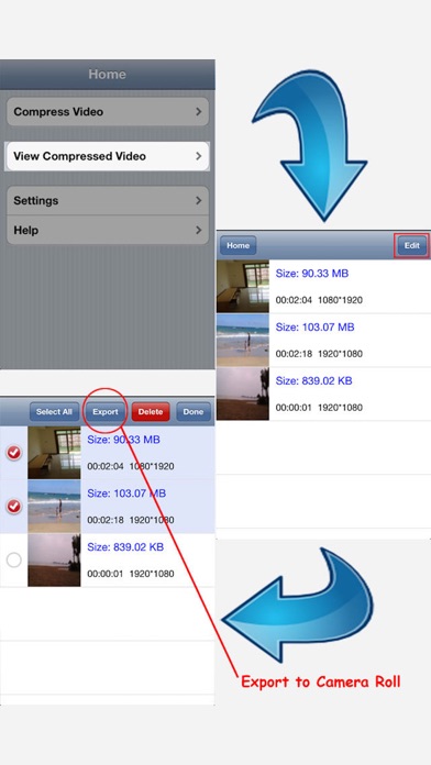 Compress video to free the space for your device Now! It re-encode videos filmed on your device to smaller file size while keeping the same video quality. Also, it can compress videos in batch. After compressed, the output videos are saved in the private folder by default. It can be exported to Camera Roll manually. Note: In order to protect your photos and videos, Apple does not allow 3rd party apps to delete contents in your Photos app. You have to delete the old videos manually. If you have any question or problems please contact [email protected]. We are committed to fixing bugs as soon as possible.