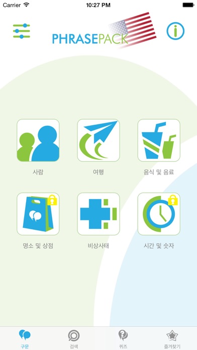 3500개 이상의 미국 영어 단어와 구문. 사용 할 수 있는 가장 종합적인 상용 회화집 중 하나입니다. 당신은 미국으로 여행 갈 계획입니까? 당신은 이 나라에 살고 있습니까? PhrasePack 미국 영어는 당신이 현지인들과 상호 작용 할 수 있도록 설계되었습니다. 이 앱은 레스토랑에서 음식을 주문하기, 길 물어보기 혹은 비상사태에 있는 것 등 많은 상황에서 당신이 현지인들을 이해하는데 도움이 됩니다. 하이라이트 + 1000개 이상의 구문을 포함된 무료 버전! + 3500개 이상의 미국 영어 구문에 접속하려면 업그레이드하세요 + 원어민의 고품질 녹음 + 남자와 여자 목소리 중 선택 + 격식체와 비격식체 중 전환 + 즐겨찾기에 자주 사용되는 구문 추가 + 특정 단어 검색 + 인터넷 접속 불필요 여러분만의 구문을 추가하시고 음성을 녹음하실 수 있습니다.(전체 버전에서만 가능) 특별히 설계 된 PhrasePack의 문장 빌더는 당신이 추가로 단어를 찾아 볼 필요없이 자신의 문장을 구성 할 수 있도록 합니다. 당신은 워싱턴 디.씨행 비행기 티켓이 필요합니까? 기본 문장과 위치를 선택하면 PhrasePack이 자동으로 문장을 완성하고 말 할 것입니다. 당신은 퀴즈 풀 준비가 되었습니까? PhrasePack의 영어 (미국) 퀴즈를 시도하고 재미있게 필수 구문을 배우세요! 카테고리 모든 구문과 단어는 카테고리에서 쉽게 접속 가능하며 간단 검색 기능을 사용 할 수 있습니다. 사람 - 대화 - 취미 & 스포츠 - 의사소통 - 로맨스 - 날씨 여행 - 도시 & 주변 돌아다니기 - 국경 & 공항 - 국가 & 언어 - 방향 & 장소 - 숙박시설 음식 & 음료 - 음식 및 향토 음식 - 음료 - 레스토랑 - 향신료 볼거리 & 상점 - 관광 명소 - 쇼핑 - 구입 & 흥정 - 색 건강 - 비상 사태 - 약국 및 병원 시간 & 숫자 - 일 & 달 - 시간 & 약속 - 숫자 PhrasePack은 언어 학습 소프트웨어 개발에 10년 이상 경험이 있는 언어 학습 전문가 팀에 의해 개발되고 있습니다. 연락주세요 PhrasePack은 지속적으로 개발되고 있으며 저희는 당신의 의견을 듣고 싶습니다. 피드백, 제안 및 의견을 [email protected]으로 보내주세요. 이 앱을 좋아하시면, 저희에게 좋은 평가를 주세요!