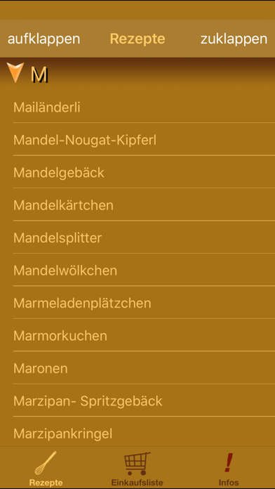 Die App enthält über 80 Backrezepte für die Weihnachtsbäckerei. Eine Rezeptsammlung für Ihr IOS Gerät. Außerdem kann zu jedem Rezept eine Einkaufsliste erstellt werden die mit eigenen Einträgen erweitert werden kann. Die App unterstützt alle IPhone, IPod und IPad Bildschirmauflösungen. Hier ist eine Auflistung der enthaltenen Rezepte: Anismonde, Ansbacher, Apfel-Zimt-Muffins, Ausstechplätzchen (einfach), Bethmännchen, Butter-Spritzgebäck, Buttergebackenes, Butterhütchen, Buttermürbeteig, Butterstangerl, Christstollen, Cornflakes Plätzchen, Dominosteine, Eigelbmakronen, Engelsaugen, Espresso Schoko-Plätzchen, Florentiner, Glühweinrauten, Haferflockenmakronen, Haferflockenplätzchen ,Haselnußbrocken, Haselnußmakronen, Heidesand, Heilig-Abend-Gebäck, Honigplätzchen, Kakaoringe, Kartoffellebkuchen, Kinderplätzchen, Knusperstangen, Kokos-Limetten-Bäumchen, Kokosmakronen, Korinthenhäufchen, Lieblicher Weihnachtstraum, Mailänderli, Mandel-Nougat-Kipferl, Mandel-Nougat-Kipferl, Mandelgebäck, Mandelkärtchen, Mandelsplitter, Mandelwölkchen, Marmeladenplätzchen, Marmorkuchen, Maronen, Marzipan- Spritzgebäck, Marzipankringel, Mohntaler, Muzen, Neapolitaner, Nougatknöpfchen, Nougatplätzchen, Nougatstangen, Nussplätzchen, Nußschnecken, Nußtaler, Oma`s Butterplätzchen, Oma´s Vanillekipferl, Orangenlocken, Orangenzungen, Pfeffernüsse, Rheinischer Spekulatius, Rumtäschchen, Schneebälle, Schneeherzen, Schoko-Brownies, Schoko-Crossies, Schoko-Zimthappen, Schokobrezeln, Schokokugeln, Schokoladenbrot, Schokostangen, Schwarz-Weiß-Gebäck, Spekulatius, Terrassenplätzchen, Tiroler Leckerli, Vanillekipferl, Vanilleplätzchen, Walnußecken, Walnußplätzchen, Weckmann, Weihnachtsbällchen, Weihnachtskekse, Wichtelgeschenk, X-Mas-Küsschen, Zarte Baiser-Kekse, zarte Haferflockenplätzchen, Zartes Buttergebäck, Zimtsterne, Zitronenherzen, Zitronenkränze Viel Spaß beim Nachbacken und ein frohes Fest mit Kekse+