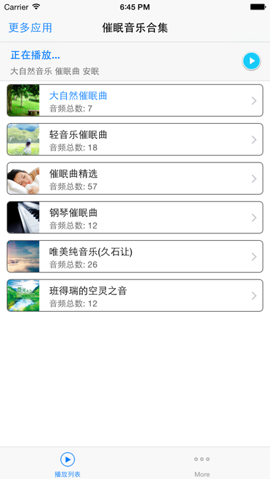 催眠音乐大合集离线版 - 治疗失眠的专家,最有效的失眠克星, 同时适合打坐、放松、瑜伽练习等环境! 高品质音质享受, 强大流畅的播放功能和使用体验, 绝对会成为您爱不释手的最佳软件之一! 由于软件体积较大, 请在wifi环境中下载安装, 一次下载, 后续无需再消耗网络流量! * 支持后台播放模式 * 支持顺序播放、随机播放等模式 * 支持定时休眠功能 睡觉前听也不用担心睡着的问题了 * 自动定位最近一次的播放记录, 省去查找的烦恼