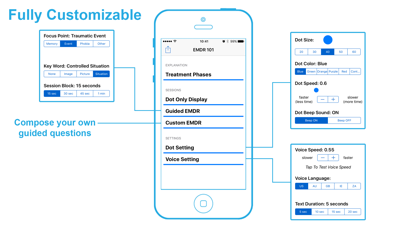 EMDR 101 is your companion into the world of EMDR as a treatment method for various mental disorders. Whether you're new to EMDR or a seasoned practitioner, EMDR 101 will still be useful in one way or the other. EMDR 101 gives you a clear overview of the various phases of a EMDR session (description and goal). With the "Guided EMDR Session" option you can do an EMDR Session in any place that you want and work through the difficult issues that your struggling with. And whenever you feel overwhelmed with feelings & emotions, you can stop by simply closing the app. And resume when you are ready. You're always in control. So find your most comfortable and save place that you know...and start the session. The "Custom EMDR Session" is for when you know more about EMDR. And it allows you to go straight to the point of desensitization & installation. The "Dot Only Display" mode is a go to option for a EMDR therapist. A distraction free and easy to handle tool that you can use in your sessions.