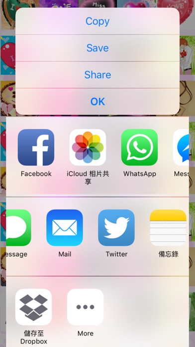 Valentines Day - 180 HD (640 x 1136 pixel) Love, Valentines Wallpaper - 210 Valentines Sticker for Messages, Mail etc. (Animation Effect for iMessage, Mail) - Over 200 Emoji Art- included Love and Valentine, Christmas, New Year, etc. - COPY , SAVE and SHARE Function. - Share to WhatsApp, Line, QQ, Weibo, Facebook, Twitter, WeChat, Telegram, Kik, etc.
