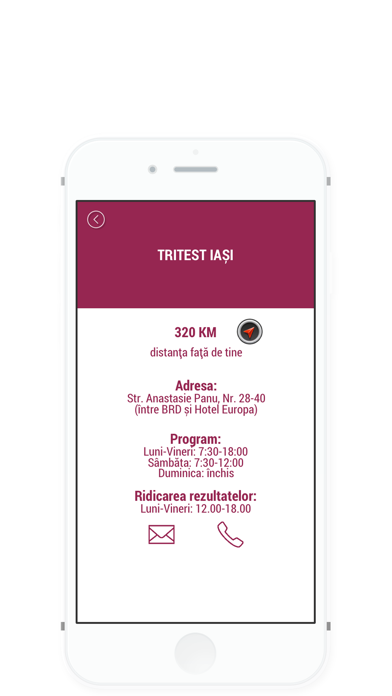 Aplicatia Tritest va ofera acces la cele mai importante informatii privind analizele pe care le puteti efectua sau documenta, ultimele stiri din domeniu si ofera functii specifice de localizare sau calculare costuri interactiv. In laboratorul de analize medicale TRITEST se pot efectua peste 500 de investigatii diferite, teste de alergologie, biologie moleculara, biochimie, hematologie, imunologie, markeri endocrini, ososi, cardiaci, tumorali, serologie, microbiologie, toxicologie, anatomie patologica. Orice alt tip de investigatie care nu poate fi gasita in lista noastra de analize va putea fi efectuata la cerere de laboratoare subcontractante din Romania sau din strainatate. TRITEST se afla in relatie contractuala cu CAS Iasi, clientii nostri beneficiind de analize gratuite in limita plafonului lunar atribuit laboratorului nostru. Laboratorul TRITEST este certificat ISO 15189 si participa la 3 programe internationale de control al calitatii: Randox-RIQAS - Marea Britanie, Labquality - Finlanda, Calilab - Romania. Cu o dotare tehnica de ultima generatie, aparatura produsa de lideri mondiali in domeniu si cu un personal de specialitate experimentat, laboratorul TRITEST se remarca prin calitatea serviciilor medicale oferite.