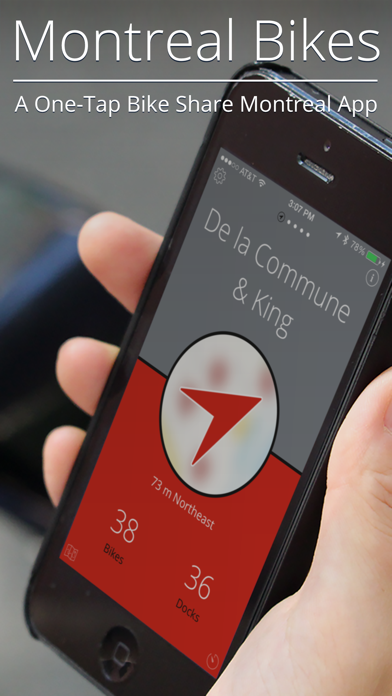 Montreal Bikes is a simple and easy-to-use App that helps you locate the closest Bixi™ docking station. With one tap you can find the closest Bixi station, how far away it is and in which direction, and how many available bikes and docks it currently has. Find out how many available docks there are at your destination easily with the full-map mode. You can even set a ride timer to help track your Bixi rental and prevent late fees. -------------------------- Montreal Bikes is not affiliated with, or endorsed by Bixi Montreal, Bixi or Public Bike System Company. Bixi™ and Bixi Montreal™ are registered trademarks of Public Bike System Company. All rights are reserved by the respective owners. Continued use of GPS running in the background can dramatically decrease battery life.