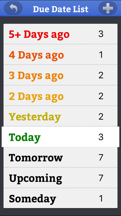 Toodledue is the companion app for Toodledo.com or it can be used as a stand alone app. This will help you keep a closer watch on your due and overdue tasks as they are slipping away from you. This unique tool helps with the problem of all overdue tasks immediately lumping into one folder that you can sometimes overlook those that are more relevant. You can see them slipping away day by day and can motivate you to DO them, or re-Prioritize/ Re-Date them for when they will be completed. ToodleDue will SYNC and stay in SYNC with your existing Toodledo account if you already have one.