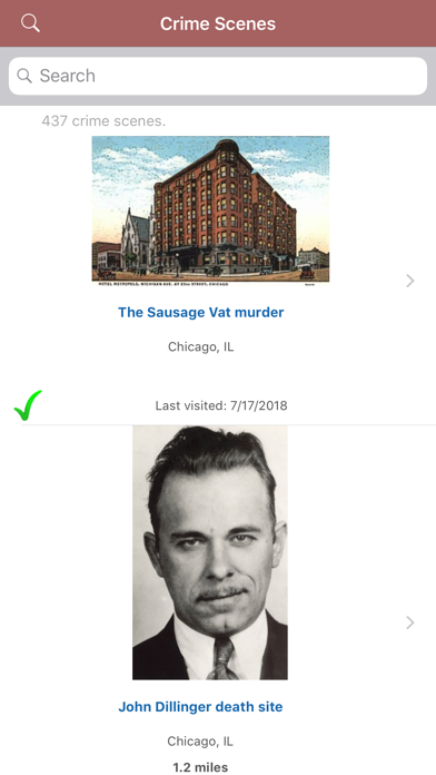 This creepy app provides a catalog of 437 famous crime scenes in the United States. Serial killers, assassinations, massacres, gangsters, etc. - GPS directions place you at the scene of the crime - automatic "check in" to track your visits - sharing: Facebook, Twitter, SMS, Email, etc. - links for more information