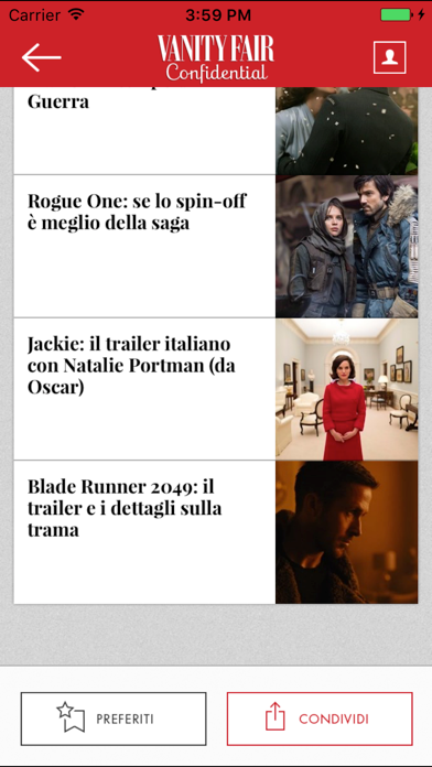 Tutti i giorni per te le notizie più esclusive di Vanity Fair, per rimanere sempre in contatto con le celebrities più amate e conoscere le storie più curiose. Con Vanity Fair Confidential porti il mondo di Vanity sempre con te in mobilità e personalizzi le tue notizie di fashion, beauty, sfilate, tendenze, lifestyle, gossip, celebrities, star, tv e show. Tutto in un'app dal design fresco e divertente, per salvare le tue news preferite e condividerle in un tap con tutti i tuoi amici su Facebook, Twitter e G+ o via mail. Scarica gratis Vanity Fair Confidential: non potrai più farne a meno!