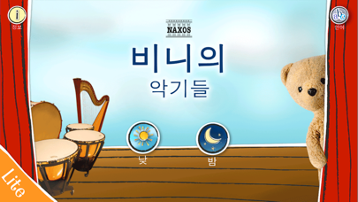 유아와 어린이, 그리고 가족 모두를 위한, 단순하지만 재미난 악기 앱입니다. 사랑스러운 곰 비니가 여러분에게 악기를 소개합니다. ‘비니의 악기들’ 체험판을 통해 4가지의 악기를 만나보실 수 있습니다. 악기들의 명칭과 각기 다른 소리를 들어보세요. 정식 버전은 24가지의 악기 소개와 함께, 비니가 음악에 맞춰 춤을 추는 모습과, 자장가를 들으며 꿈나라로 빠져드는 모습을 볼 수 있습니다. 낮이나 잠들기 전 이용하기 안성맞춤인 비니의 악기들 앱은 귀여운 캐릭터뿐 아니라, 최고의 음반사 낙소스에서 선별한 음원을 통해 악기 고유의 소리를 명확하게 전달합니다. 정식 버전의 앱은 영어와 독일어, 프랑스어, 스페인어, 핀란드어, 노르웨이어, 그리스어, 중국어, 일본어 그리고 한국어 등 10개의 언어로도 제공됩니다. 정식 버전에 포함된 악기: 피아노, 바이올린, 비올라, 첼로, 더블베이스, 하프, 기타, 플룻, 오보에, 클라리넷, 바순, 색소폰, 트럼펫, 트롬본, 호른, 튜바, 팀파니, 실로폰, 글로켄슈필, 스네어 드럼, 베이스 드럼, 탬버린, 심벌즈, 트라이앵글. 세계를 선도하는 클래식 독립 음반사 낙소스에서 제작하는 앱은 끊임없이 호평을 받으며, 음악 전문가들의 지식과 애정을 담아 널리 보급 및 이용되고 있습니다. “자녀와 부모 모두 이 앱의 매력에 빠져들 것이다.” 영국의 유명 주간지 “선데이 타임즈”가 평가한 ‘나의 첫 클래식 음악 앱’ “낙소스는 정말 놀라운 회사이다.” 미국의 저명한 음반 잡지, “팡파레”, 2013 - 아이들의 참여를 유도하는 새로운 앱 - 낮 동안이나 잠자리에 들기 전 이용하기에 최적 - 24가지의 악기 소리와 설명이 선명하게 들리는 음질 - 전문 연주자들의 레코딩에서 선별된 음원을 통해 악기 소리가 선명하게 전달 - 움직이는, 개성이 강한 캐릭터 곰 ‘비니’가 이끄는 악기 소개 - 악기들의 선명한 사진 이미지 제공 - 10개의 다른 언어 제공 - 2개의 관현악 트랙: 1. 들리브의 ‘코펠리아’ 중 1막 마주르카, 2. 포레의 ‘자장가’, Op. 16.