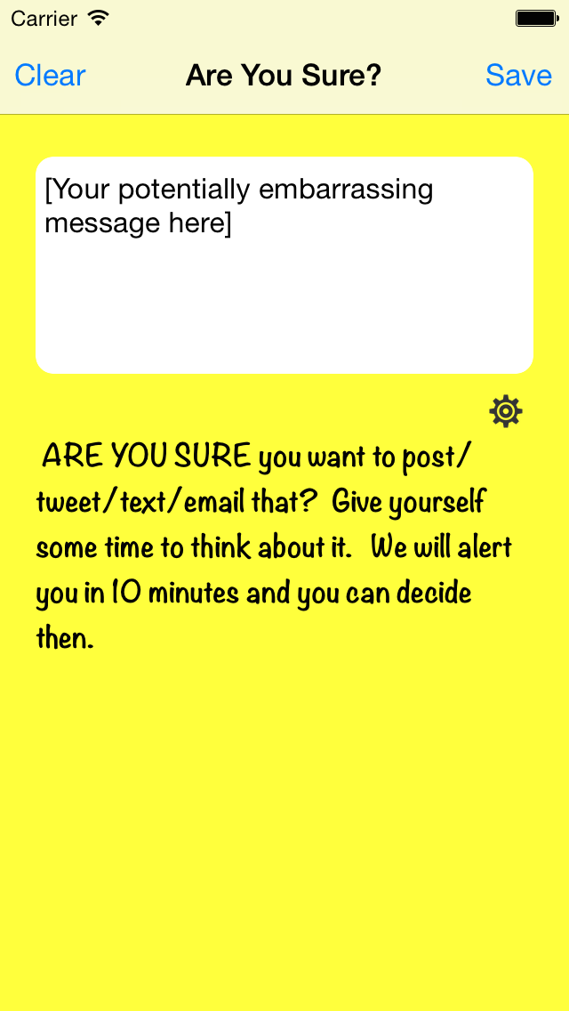 AreYouSure is here to save your butt! No more costly and embarrassing social mistakes. AreYouSure gives you some time to think about it before you post, tweet, text or email something you might later regret. We've got your back ;-) AreYouSure - protecting your self from yourself since 2014.