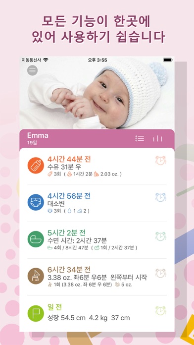 육아일기장으로 아기의 하루 습관, 건강, 발달지표를 쉽게 추적할 수 있습니다. 식사, 기저귀 교체, 수면 패턴을 상세한 메모와 사진과 함께 기록으로 남길 수 있습니다. 육아일기장은 자녀의 모든 중요한 정보를 의사, 보호자, 친구, 가족과 공유할 수 있습니다. 아마 가장 중요한 점은 육아일기장이 모든 상세한 정보를 관리해주기 때문에 여러분은 육아의 즐거움에 집중할 수 있습니다. * 식사 추적: 수유, 유동식, 고형식 * 기저귀 교체 추적 * 수면 스케줄 추적 * 성장 기록 차트 보관 * 발달지표 기록 * 주별 또는 월별 데이터 보기 * PDF로 데이터 내보내기 * iCloud 또는 Dropbox로 자동 백업 * 여러 장치 간 동기화