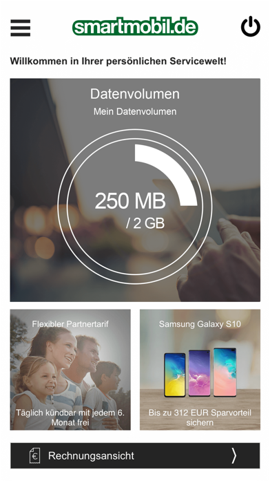 Alle Vorteile Ihrer persönlichen Servicewelt in einer App Wichtige Funktionen im Überblick • Datenverbrauch kontrollieren* • Rechnungen einsehen* • Guthaben aufladen (nur für Prepaid-Tarife) • Kundendaten ändern • Tarifoptionen flexibel buchen und verwalten • Tarifdetails einsehen • Mehrere Rufnummern verwalten • Hilfe und Kontakt Angemeldet bleiben Wenn Sie diese Funktion auf der Login-Seite aktivieren, meldet sich Ihr Endgerät zukünftig automatisch in Ihre persönliche Servicewelt App an, ohne dass Sie Ihre Zugangsdaten erneut eingeben müssen. Weitere Hinweise *Diese Funktion steht für Prepaid-Tarife bzw. Tarife mit Komfort Aufladung nicht zur Verfügung. Ihre Meinung zur Servicewelt App Ihre Zufriedenheit ist uns wichtig. Haben Sie Fragen zur App oder möchten Sie uns Anregungen zur Weiterentwicklung der App geben? Melden Sie sich gerne per E-Mail an [email protected]