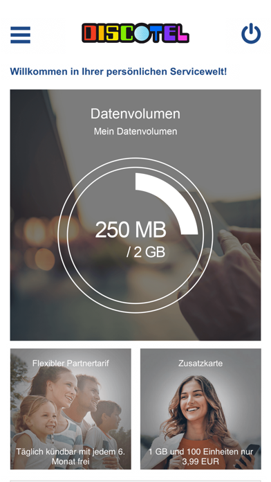 Alle Vorteile Ihrer persönlichen Servicewelt in einer App Wichtige Funktionen im Überblick • Datenverbrauch kontrollieren* • Rechnungen einsehen* • Guthaben aufladen (nur für Prepaid-Tarife) • Kundendaten ändern • Tarifoptionen flexibel buchen und verwalten • Tarifdetails einsehen • Mehrere Rufnummern verwalten • Hilfe und Kontakt Angemeldet bleiben Wenn Sie diese Funktion auf der Login-Seite aktivieren, meldet sich Ihr Endgerät zukünftig automatisch in Ihre persönliche Servicewelt App an, ohne dass Sie Ihre Zugangsdaten erneut eingeben müssen. Weitere Hinweise *Diese Funktion steht für Prepaid-Tarife bzw. Tarife mit Komfort Aufladung nicht zur Verfügung. Ihre Meinung zur Servicewelt App Ihre Zufriedenheit ist uns wichtig. Haben Sie Fragen zur App oder möchten Sie uns Anregungen zur Weiterentwicklung der App geben? Melden Sie sich gerne per E-Mail an [email protected]