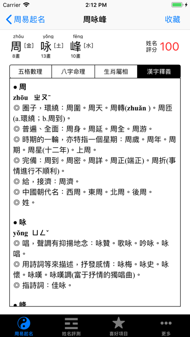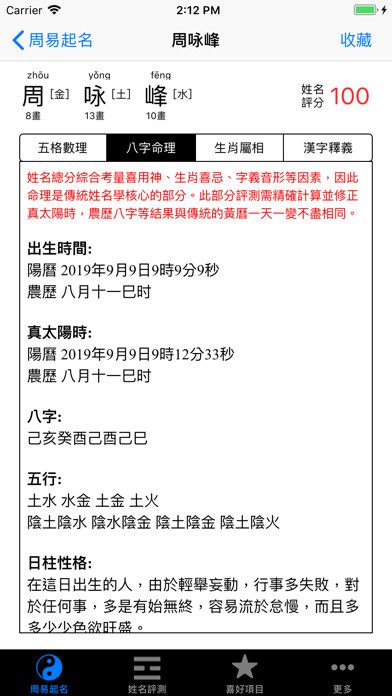 周易起名是基于中国传统周易理论, 综合生辰八字喜用神、三才五格笔画、生肖喜忌、字形、音义等开发的专业起名辅助App。 * 专业八字测算、汉字音律、意义、字形等解释 *支持大陆简体及台湾、香港、澳门等地区的繁体语言 * 采用真太阳时作为推算八字基础,准确判断八字格局 * 汉字笔画及五行属性以《康熙字典》为标准 *一键轻松生成 * 好名收藏功能。 简单一键加入收藏夹, 可供随时查阅