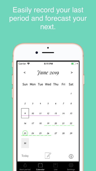This is a beautiful and clear period calendar which is easy to use. Quickly and easily record your last period and forecast your next period and fertile days. The app comes with a useful reminder function which informs you shortly before your next period starts. It intentionally avoids superfluous functions and concentrates on the core task: to record and forecast your period in an intuitive and beautiful way. « No fuss, just what I've been looking for! » « Super modern. No clutter - screens are clean and very minimal. App is really user friendly - it took less then 30 seconds to enter my info. And best part NO PINK! »