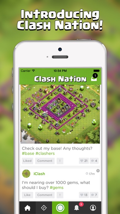 Introducing Clash Nation, the first social network for Clash of Clans! Find players, new tips, and more with Clash Nation! Share photos, videos, and status updates with your followers. Discover new Clashers by using the Explore tab. Features • Share photos, videos, and text posts. • Follow other Clash of Clans players. • Customize your profile. • Easily message other users. • Simple interface. ...and more! Download Clash Nation today!