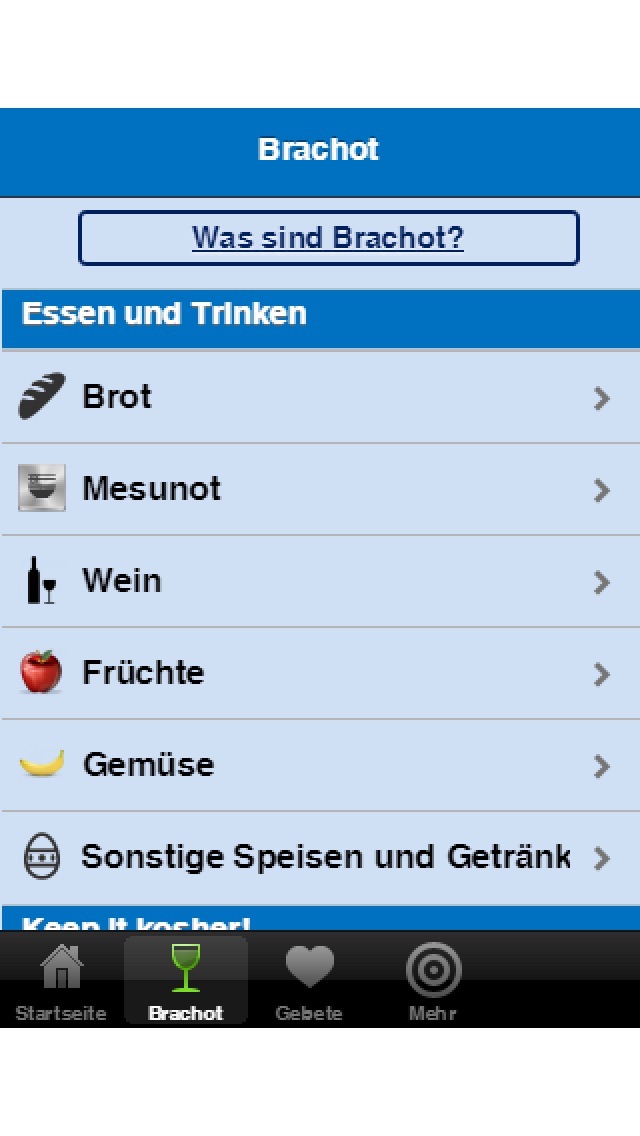 iBrachot ist die App der ersten Wahl für jeden jungen Juden in Deutschland! Die gängigsten Brachot, Gebete, Reisegebete und Anleitungen sofort und jederzeit Verfügbar auf dem Handy!