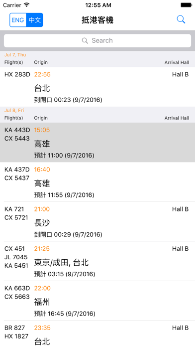 Real time passenger flight information for the Hong Kong International Airport. - super fast loading - show both departure and arrival flights (swipe left / right!) - auto highlight a flight closest to current time - search for destination/origin, flight number, and even time We will keep improving this app with most-wanted features for travelers to/from HK. Please suggest!