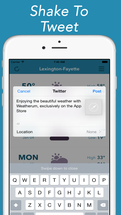 Weatherum - Clean, Minimal Weather Let's get rid of the bloated, complicated weather apps and just see our weather - clean and minimally. Plus it doesn't hurt to shake to tweet right? db8498d83e