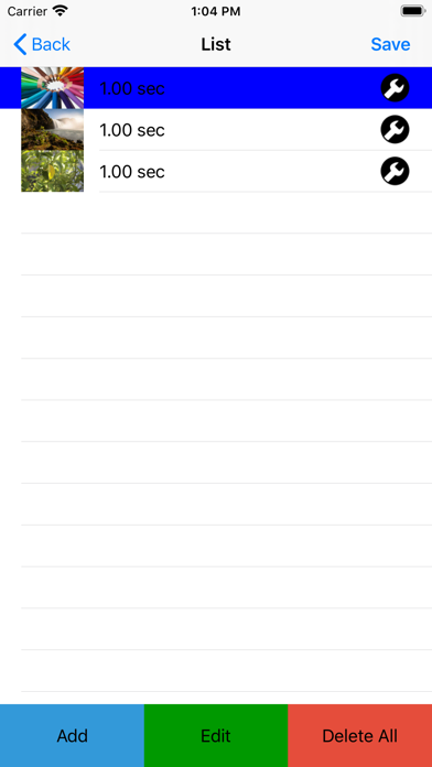 This app generates videos from multiple images. ---- Function * Tutorial video 1. Press the play button at the top left of the top screen to play the tutorial video. * Make videos from images. 1. Press the icon circle button in the center of the tool bar at the bottom of the top screen to move to the image list screen. 2. Select an image. -You can select the image you want to add to the video from the ADD button. (Multiple selections are possible). If you want to add between lines, select the line you want to add first (the background color changes to blue) and then add it with the ADD button. If you press the i button at the right end of the line, you can change the image and change the playback time. -Press the EDIT button to change or delete the image playback order. -Press the DEL button to delete all lines. 3. Once you have selected an image, press the Create Movie button on the top right to return to the top screen. 4. Press the play button on the top left of the top screen to play the created video. 5. From the arrow button on the right side of the toolbar, select “Save” to save the video. * Set the movie playback time (initial value 1 second) for each image. 1. Press the gear button on the left of the tool bar at the bottom of the top screen to move to the setting screen. 2. After changing the playback time, confirm with the save button in the upper right.
