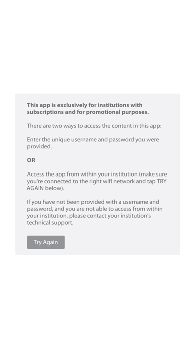 *** This is the subscription version of Skeleton Premium. It is exclusively for institutions with subscriptions and for promotional purposes. *** There are two ways to access the content in this app: Enter the unique username and password you were provided OR access the app from within your institution (make sure you're connected to the right wifi network). *** Usernames and passwords are not sold separately through Visible Body or available for purchase within this app. *** If you have not been given a username and password or if your institution has not subscribed, this app will be locked and unusable. *** There is a version of this app that does not require a username and password or subscription. To find and download it, search for Skeleton Premium by Visible Body. ***** Works on both your iPad AND your iPhone. Works on iPad 2, new iPad (3rd generation), iPad with Retina display (4th generation), iPad mini, iPhone 4, iPhone 4S, iPhone 5, and iPod touch (5th generation). Compatible with iOS 6 and iOS 7. ***** Take a deep dive into the human skeletal system. Skeleton Premium includes: - Models of hundreds of bones and ligaments, including over 800 bony landmarks. - Moving models of synovial joints. - Animations and illustrations that explain anatomy and pathologies. - Models, animations, and illustrations about bone tissue - Hundreds of quiz questions.