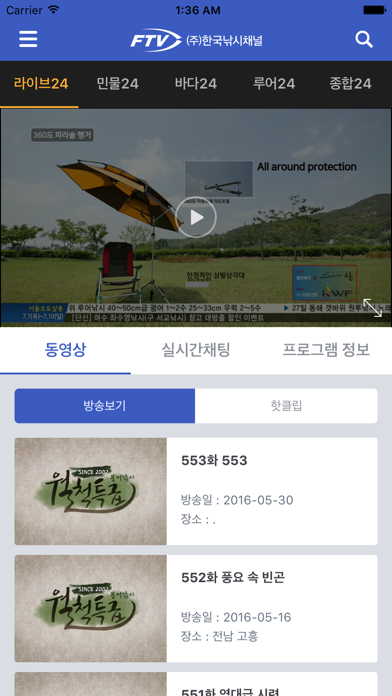 FTV한국낚시채널 공식 모바일 어플리케이션! 실시간 무료 LIVE 서비스는 물론 따끈따끈한 VOD 영상까지 FTV 모바일앱으로 한번에! [이용권 구독정보] VOD 1개월 정기구독: 13.19$ VOD 3개월 정기구독: 35.19$ LIVE 1개월 정기구독: 13.19$ LIVE 3개월 정기구독: 35.19$ [이용권 구매 주의사항] - 할인가격은 프로모션 종료 후 변경될 수 있습니다. - 구독(자동결제) 시 결제 당일을 제외한 이용기간 중 언제든지 구독(자동결제)을 해지하실 수 있습니다. 해지 시 더 이상 추가 결제되지 않으며 남은 기간동안은 계속 이용하실 수 있습니다. - 모든 상품은 선불결제 방식으로 구매 및 사용하신 이용권에 대해서는 결제취소 및 환불되지 않습니다. - iOS 는 앱 내 결제를 이용해 주시고, iOS 앱 내 결제 관련 문의는 APPLE 고객센터로 문의 부탁 드립니다. - 회원 탈퇴 시 iTunes 구독 해지가 자동으로 되지 않으니, 반드시 iTunes 계정관리에서 구독 취소 부탁 드립니다. [iTunes 구독(자동결제) 주의사항] - 결제는 iTunes 계정(App Strore)으로 진행됩니다. - iTunes 구독(자동결제)은 갱신 전 (최대) 24시간 이내에 구독을 취소해도 자동으로 갱신됩니다. - 구독(자동결제) 시 갱신 전 (최대) 24시간 이내에 금액확인과 함께 결제됩니다. - 구독 해지는 iTunes의 계정설정에서 변경할 수 있습니다. - 서비스 이용 시작 후 구매취소는 불가능합니다. - 회원 탈퇴 시 iTunes 구독 해지가 자동으로 되지 않으니, 반드시 iTunes 계정관리에서 구독 취소 부탁 드립니다. - 이용권이 지급되지 않은 경우나, 중복 구매 등, 앱 내 결제 관련 문의는 APPLE 고객센터로 문의 부탁 드립니다. [이용약관] http://eftv.co.kr/m1=terms [개인정보취급방침] http://eftv.co.kr/m1=privacy
