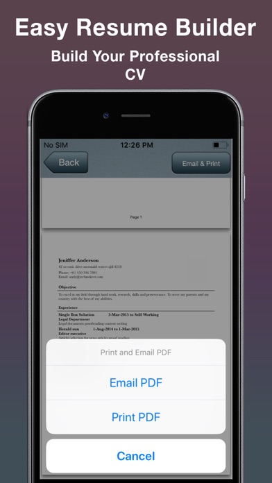 Now you can keep your resume always with you so if anyone asks for your resume you can provide him the resume instantly without any delay by preparing it using the app or you already have the prepared resume then by sharing it from the application. Build your professional formatted resume using the application. The resume is prepared just by adding the appropriate information in the fields. App provide the users to make the multiple profiles to prepare resume and to generate the resume in the PDF format with paging. Easy to use and learn with the beautiful and simple user interface. Some of the features of the application are: • Can make the multiple profiles or resume for test purpose. • Perform data validation and checks so that the necessary information is added before generating the resume. • The resume is generated in the PDF with paging. • Able to share the resume through Email or print the resume in the PDF format. • Support for the multiple languages (15 language support) • Beautiful and user friendly interface • Ability to insert the Cover letter and the objectives in the resume. • Predefined objectives can be added in the resume or the objective can be written by the user