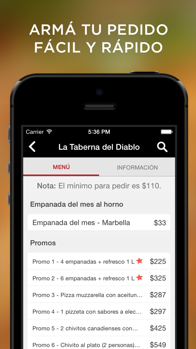 Aplicación oficial de La Taberna del Diablo © para pedir comida online. Con nuestra aplicación podrás pedir las empanadas más ricas de Montevideo en menos de un minuto. Elegí los sabores que más te gusten y preparate para disfrutar en la comodidad de tu casa. Tenemos un amplio menú gastronómico, además de empanadas, podés pedir pizzas, calzone, lehmeyun, chivitos y ¡mucho más! Ingresá tu dirección, elegí tu plato favorito, y ¡disfrutá!