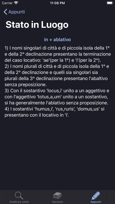Latinorum permette di: - analizzare qualsiasi verbo e consultare la cronologia dei verbi ricercati - consultare più di 5000 versioni (oltre 50 libri) senza accesso a internet, sia nella loro versione in italiano, che in latino! - supporto per Apple Watch per consultare appunti e versioni tradotte quando non si ha l'iPhone in tasca! - consultare i complementi con le rispettive regole - consultare i vari casi in cui si può trovare un complemento Libri tradotti: - Alias - Codex Esercizi 1 - Cotidie Legere - Da Roma All'Europa - Donum 1 - Donum Quaderno 1 - Ex Novo A - Grammatica Picta 1 - Grammatica Picta 2 - Gradus Facere 1 - Il Nuovo Expedite Plus 1 - Il Nuovo Expedite Plus 2 - Il Nuovo Expedite 1 - Il Nuovo Expedite 2 - Il Nuovo Latino a Colori - Il Tantucci 1 - Il Tantucci 2 - Il Tantucci Plus 1 - Il Tantucci Plus 2 - La Lingua delle Radici 1 - La Lingua delle Radici Edz. Blu 1 - La Lingua delle Radici Edz. Blu 2 - Latino a Colori 1 - Latino a Scuola Latino a Casa 1 - Latino a Scuola Latino a Casa 2 - Latino ad Hoc 1 - Latino ad Hoc 2 - Latino allo Specchio 1 - Lingua e Cultura Latina 1 Edz. Gialla - Lingua e Cultura Latina 1 - Lingua e Cultura Latina 2 - Lingua Magistra 1 - Lingua Magistra 2 - Lingua Viva 1 Edz. 2 - Lingua Viva 2 - LL - 50 Lezioni di Latino - 2nd Edz. - LL - 50 Lezioni di Latino - Ludus in Tabula - Gradus Primus - Maiorum Lingua A - Maiorum Lingua B - Maiorum Lingua C - Mirum Iter 1 - Mirum Iter 2 - Monitor 1 - Monitor 2 - Nuovo le Ragioni del Latino 1 - Plane Discere 1 - Plane Discere 2 - Repetita 1 - Sermo et Humanitas 1 - Sermo et Humanitas 2 - Sistema Latino 1A - Studiare Latino 1 - Tu Quoque - Verba Manent 1 - Verba Manent 2