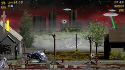 Earth is under attack! Aliens are turning people into zombies and taking over the world. The only thing standing in their way is the Cat Lady and her clowder of misfit cats. In this post apocalyptic zombie ridden world, cats with specialized abilities are the only weapon to fight the zombie hordes. The Cat Lady uses a make-shift catapult, crudely constructed from a rocking chair, a shovel and some duct tape to launch cats at zombies. The aliens do not use the zombies for all their dirty work, the Cat Lady must battle the aliens in their spaceships to preserve her way of life. The cats can help her overpower the aliens and defeat the undead. Not all cats are created equal, some cats can ignite zombies on fire, some can bomb zombies, some can even build the Cat Lady a fence. Be careful, the desolated zombie filled badlands are full of obstacles, some can be helpful but some can be a hindrance! Use trash cans, rigged cages, snares, and more to accomplish the simple task of survival. See how you rank with others using Game Center. Accomplish tasks and get rewards to unlock and upgrade cats with special abilities.