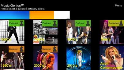 This music trivia application gives you a random set of 15 questions per category, which include years (1950's - 2010's), type of music (American Rock, Country, Pop, etc.), and specific groups (Beatles, Eagles, etc.). You can optionally store your information in order to compare your scores to others around the world. There are well over four thousand questions, so keep trying over and over. You are allowed 30 seconds per question.
