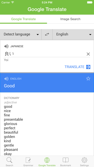 The BEST Japanese Vietnamese English dictionary on App Store! We have been trying to make a great application to provide users a new experience on using a dictionary. COMPREHENSIVE - FAST - NICE *** COMPREHENSIVE New Japanese Dictionary contains a very very huge database, more than 400.000 words of Japanese, Vietnamese and English. *** FAST A Great Performance even running on the iPhone 3GS or iPhone 4. *** NICE A very modern, nice but simple user interface. This will make users very easy-to-use the application. Users can also customize the font or size of the meaning text. Key Features: - Grammar dictionary, more than thousand grammar structures from N5 to N1 level. - Japanese Vietnamese, Vietnamese Japanese dictionaries with more than 150.000 words. - Japanese English, English Japanese dictionaries with more than 250.000 words. - Search a word simultaneously in various dictionary in both Japanese, Vietnamese oe English. - Be able to enable or disable a dictionary. - Fast Searching - Show full meaning while searching - Pronunciation in all Japanese and English words. - Touch any word to show its meaning. - Change the font and text size. - Favorites & History list. ********************* New Japanese Dictionary, ứng dụng từ điển tiếng Nhật tốt nhất cho iPhone/iPad, đã có mặt trên AppStore. Với giao diện trực quan, khối lượng từ vựng đồ sộ với tổng cộng hơn 400.000 mục từ trong 5 từ điển, New Japanese Dictionary sẽ là bộ từ điển không thể thiếu cho bất cứ ai học tiếng Nhật. Các từ điển được tích hợp trong ứng dụng: - Từ điển Nhật Việt: khoảng 74.000 từ - Từ điển Việt Nhật: khoảng 60.000 từ - Từ điển Anh Nhật: khoảng 95.000 từ - Từ điển Nhật Anh: khoảng 172.000 từ - Từ điển ngữ pháp tiếng Nhật: gần 1000 cấu trúc ngữ pháp từ N1-N5 Các chức năng nổi bật: - Cho phép chọn một hay nhiều từ điển để tra từ. - Tìm kiếm một từ đồng thời trong nhiều từ điển. - Có phát âm cho tất cả các từ tiếng Nhật và tiếng Anh. - Hiển thị nghĩa ngay khi tra từ (quick search). - Lịch sử các từ đã dịch. - Đánh dấu từ vào danh sách ưa thích. - Tra cứu cấu trúc ngữ pháp từ N1-N5 - Tra từ online Nếu thấy ứng dụng có ich, hoặc ủng hộ, hãy rate ứng dụng của chúng tôi nhé. Mọi thắc mắc xin gửi về [email protected]. JVDict by Juice Apps Email: [email protected]