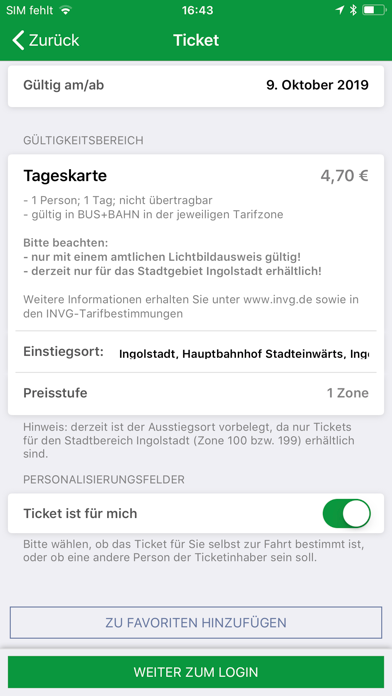 Die INVG Fahrinfo App ist die mobile Fahrplanauskunft mit Ticketingfunktion für den ÖPNV im Verkehrsgebiet der Ingolstädter Verkehrsgesellschaft. Funktionen - Verbindungsauskunft, auch mit Tür-zu-Tür-Navigation (inklusive Fußwegrouting) - Auswahlmöglichkeit der zu berücksichtigenden Verkehrsmittel (Zug/Bus) - Fahrplaninformationen mit aktueller Verspätungslage - Tarifanzeige - Einfache Start- und Zielsuche dank unterstützender Vorschläge - Start, Ziel und Routen können als Favoriten markiert werden - Anzeige der aktuellen Ankünfte und Abfahrten für jede beliebige Haltestelle - Anzeige von Haltestellen in der Umgebung - Export von Verbindungsdaten in Kalender, E-Mail oder SMS Hinweise Zur Verwendung der Fahrplanauskunft wird eine aktive Onlineverbindung benötigt. Vor dem Ticketkauf ist eine Registrierung erforderlich. Die Zahlungsabwicklung wird durch unsere Partnerfirma „LOGPAY FINANCIAL SERVICES GMBH, Schwalbacher Str. 72, D-65760 Eschborn, übernommen. Zu unseren Zahlungsmethoden zählen ApplePay, PayPal, SEPA-Lastschrift, Mastercard, Visa und American Express. Es kann keine Garantie für die Vollständigkeit und Richtigkeit der Angaben gegeben werden. Berechtigungen Das Programm (App) benötigt für den vollen Funktionsumfang neben dem Internetzugriff folgende Berechtigungen: - Ihren Standort: Um als Start/Ziel "Aktuelle Position" zu verwenden bzw. Haltestellen in der Umgebung zu ermitteln. - Adressbuchzugriff: Wenn dieser zugelassen ist, hat das Programm Zugriff auf die Kontaktdaten. Durch Auswahl eines Kontaktes wird die dazu hinterlegte Adresse in das Start-/Zielfeld übernommen. Bei der Verbindungssuche wird dann die im Kontakt angegebene Adresse als Start/Ziel in der Anfrage übertragen (dabei kann das System nicht unterscheiden, ob Sie die Adresse aus den Kontakten ausgewählt oder manuell eingegeben haben). Diese Berechtigungen werden ausschließlich innerhalb des mobilen Endgerätes für die beschriebenen Zwecke genutzt. Die Anrufliste wird von der App nicht ausgelesen. Sie können die Berechtigungen in den Einstellungen Ihres Smartphones anpassen und unsere Fahrinfo-App ohne diese Funktionen verwenden.