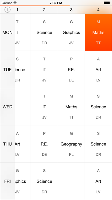 Tired of carrying around a paper timetable? Well, your problem is solved! Let iTimetable calculate everything for you and receive notifications before the end of a lesson and a break! iTimeTable is a simple application made for those attending primary school, secondary school, college or university, supporting up to 4 different weeks you can switch between. It's designed to help you so you don't have to remember all of your lessons, classrooms, teachers, times when the bell rings... With iTimeTable you don't have to calculate how many more minutes you're going to stay on current lesson no more!